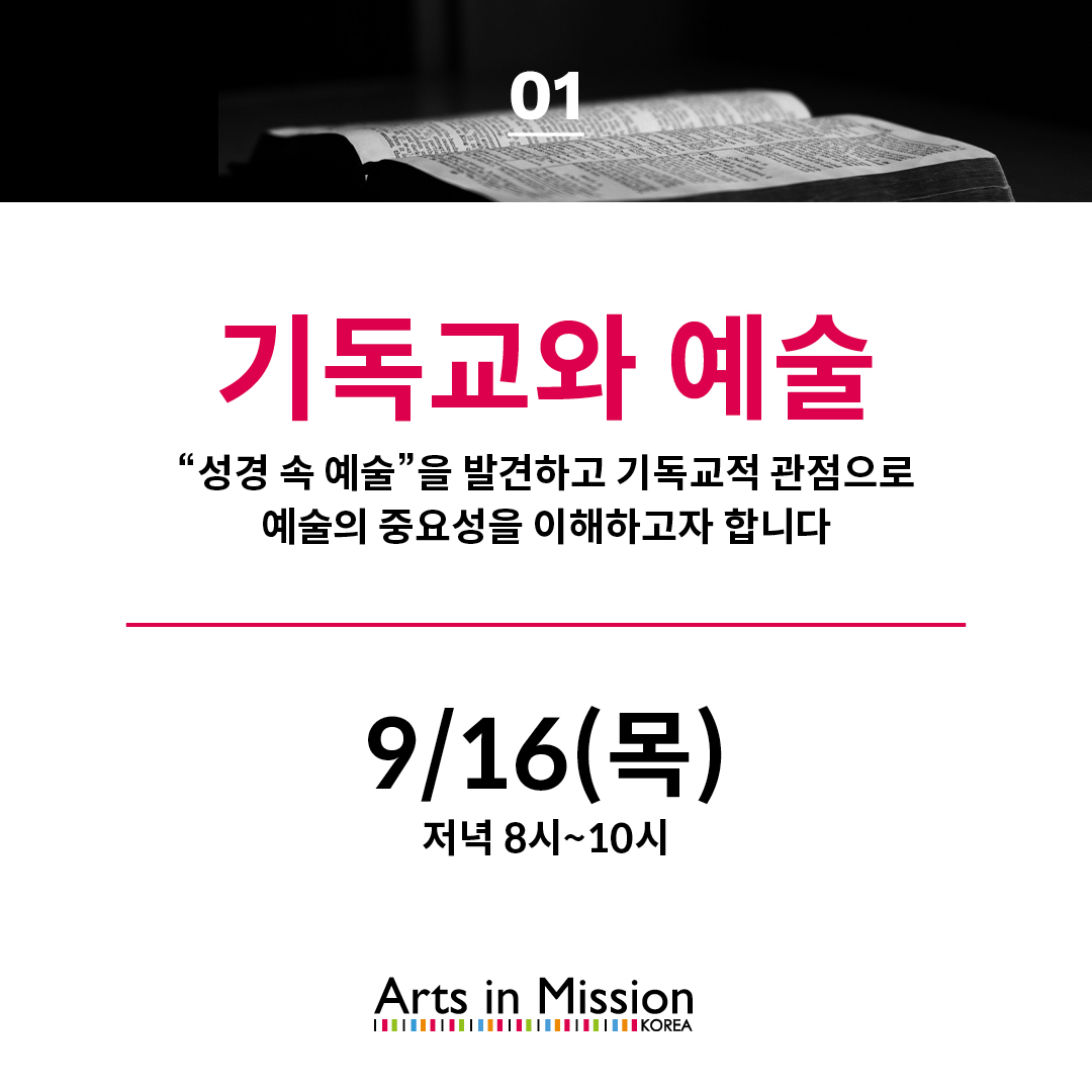 1) 9/16(목) 저녁 8시~10시 <기독교와 예술>